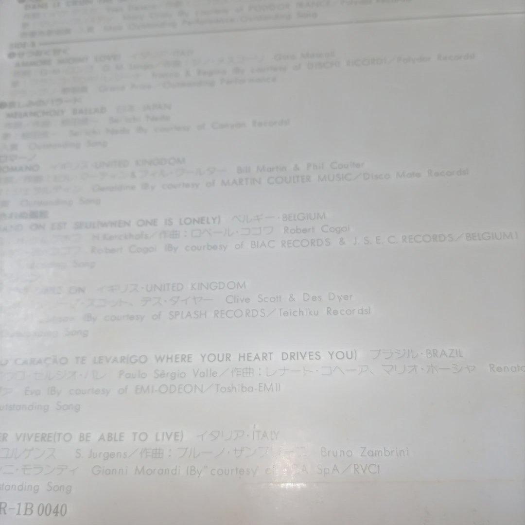 - ✔ This is a vintage live LP record of the 7th World Popular Song Festival held at Nippon Budokan in Tokyo from November 19 to 21,1976. Celebrating the excitement of this international music event,the album features 13 tracks performed during the festival,including award-winning performances such as Sandy's "Goodbye Morning," Franco & Regina's "Sweet and Sad," and Marie-Christie's "Prayer to the Sky," along with other notable artists like Jigsaw and Gianni Morandi. The record is housed in a double jacket with a band,but without lyric inserts. While the jacket shows slight signs of wear,the vinyl itself is in excellent,near-new condition. The album is a must-have for collectors of vintage Japanese and international music festivals.