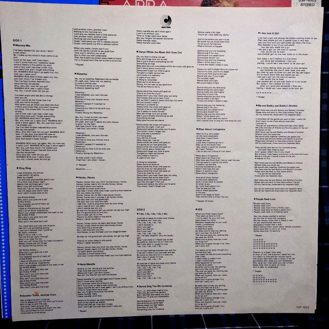 - ✔ - Japanese pressing of ABBA's "All About ABBA Mamma Mia"