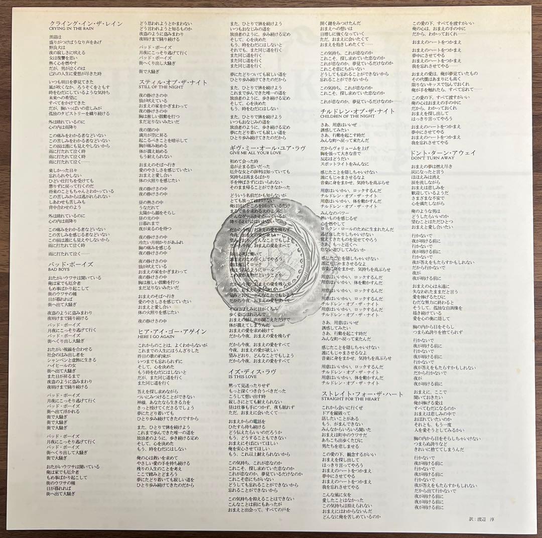 - ✔ This edition is a Japanese domestic release by CBS/Sony,serial number 28AP3310,and is classified as a "Beautiful" (美盤) pressing. The album is a hard rock classic,showcasing Whitesnake's signature style within the rock genre. The vinyl is in near-mint condition, with minimal wear,and the liner shows slight staining but remains in good shape. The cover exhibits only light stains,and the obi strip is intact and in excellent condition. This record has been tested and confirmed to sound great,with no issues during playback.