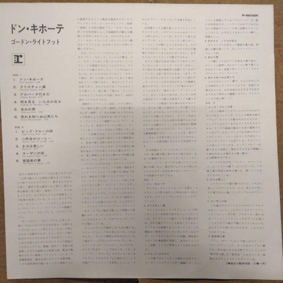 [LP with '72 band] Gordon Lightfoot Don Quijote P-8232R