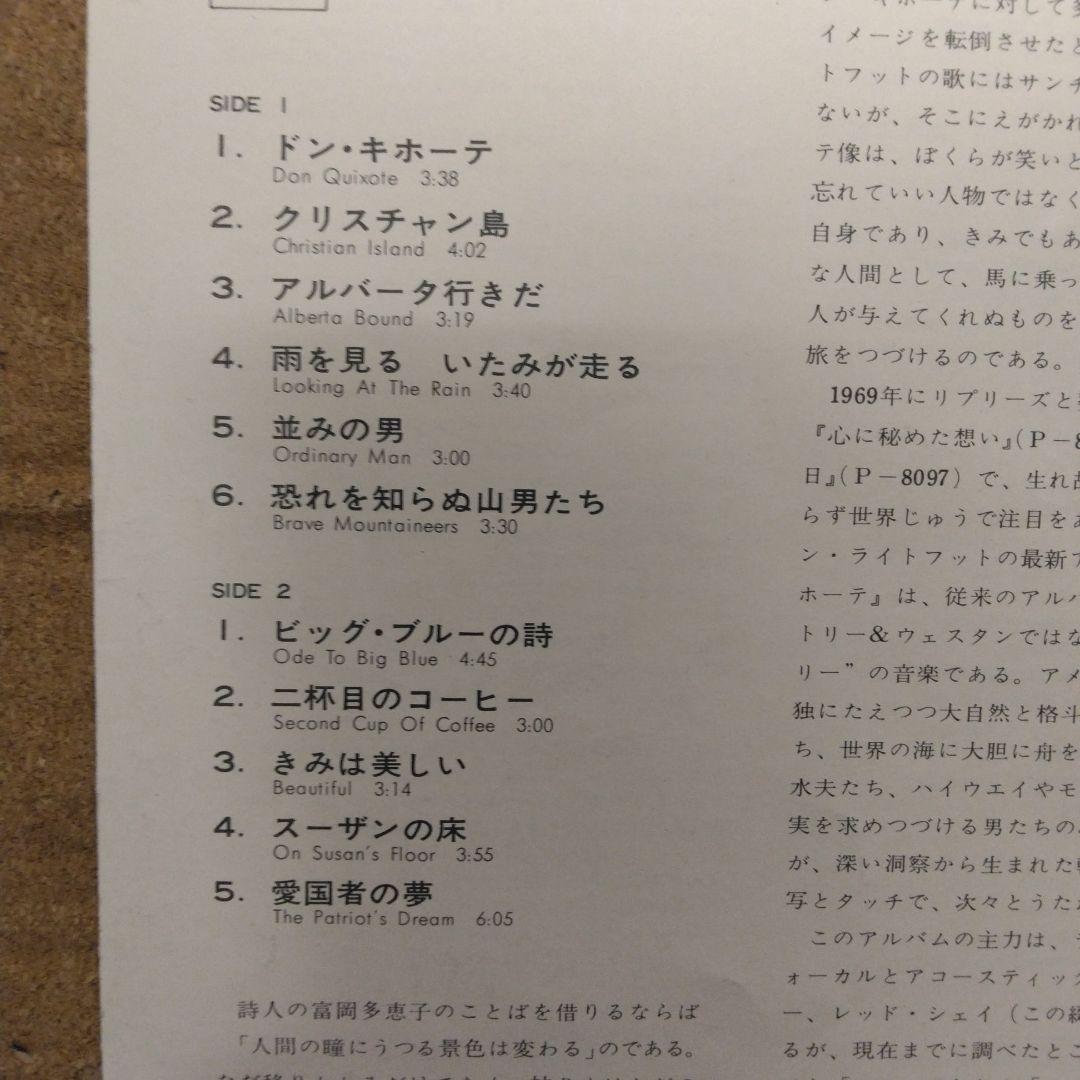 [LP with '72 band] Gordon Lightfoot Don Quijote P-8232R | Japansoundstore